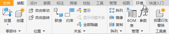 - 在部件文件中,在功能区中单击“环境”选项卡。