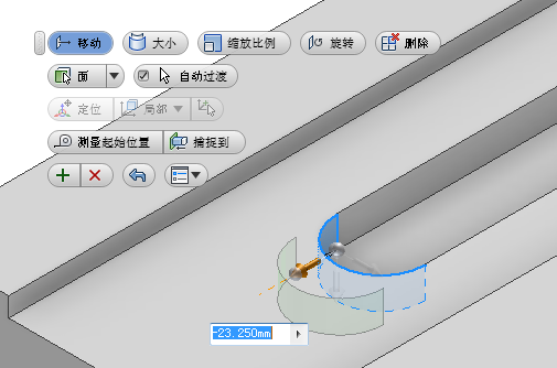 自动过渡是一种重新过渡技术,可自动移动相邻的相切面,还可以创建新过渡(如果需要)。当移动或旋转面时可用。
