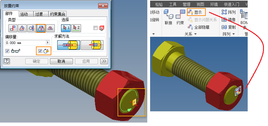 在放置插入约束时,可以使用“锁定旋转”新选项锁定零部件上的旋转自由度。此选项可防止零件旋转。