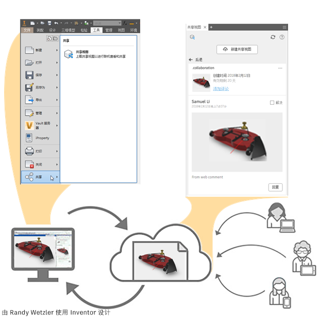 Inventor 2019 连接到 Autodesk Cloud,允许用户以强大的新方式协作、设计以及就设计进行交流。通过连接云的 Inventor 可以突破桌面的局限,支持您使用简单、安全且强大的工作流来利用他们的设计。