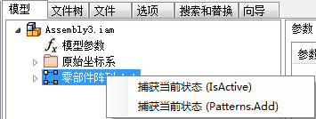 在部件文件中,在“编辑规则”对话框的“模型”选项卡上,选择多个零件名称,单击鼠标右键,然后从关联菜单中选择“Capture.Current.State (Components Constraints.Add)”。