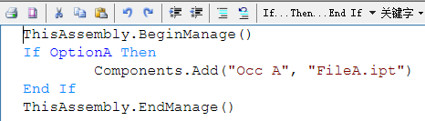 当 EndManage 代码运行时:如果 OptionA 为 False,且名为 Occ A 的零部件在部件中已存在,则会自动将其删除。