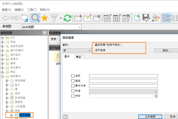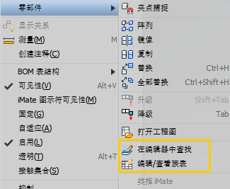 “在编辑器中查找”:“资源中心编辑器”对话框将会打开到资源中心库中该零件的位置。