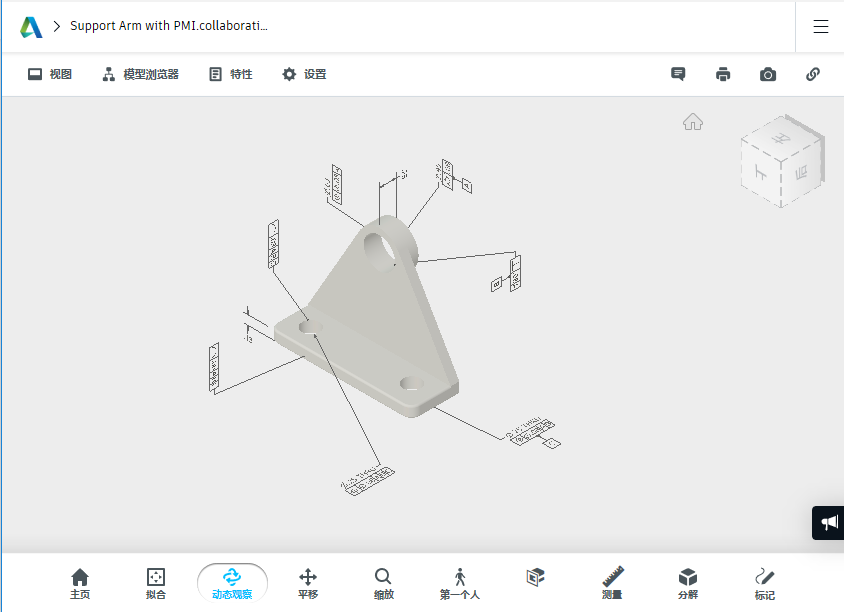 在共享视图和 Fusion Team 查看器中现在显示三维标注。