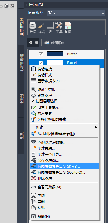 在 Parcels 图层上单击鼠标右键以将其输出。