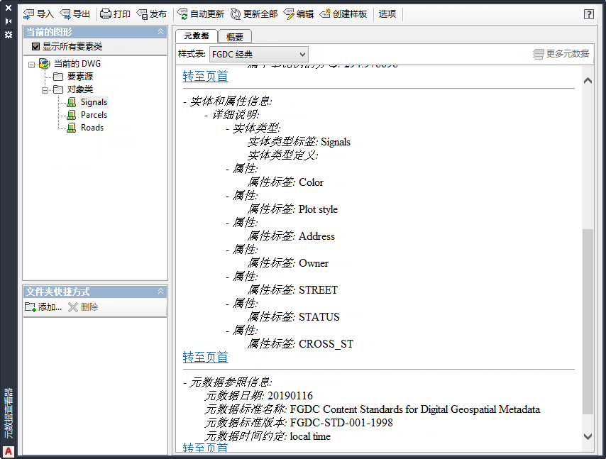 该元数据存储在图形内。每次编辑图形或重新连接到包含已分类对象的附着图形时,都会更新元数据。