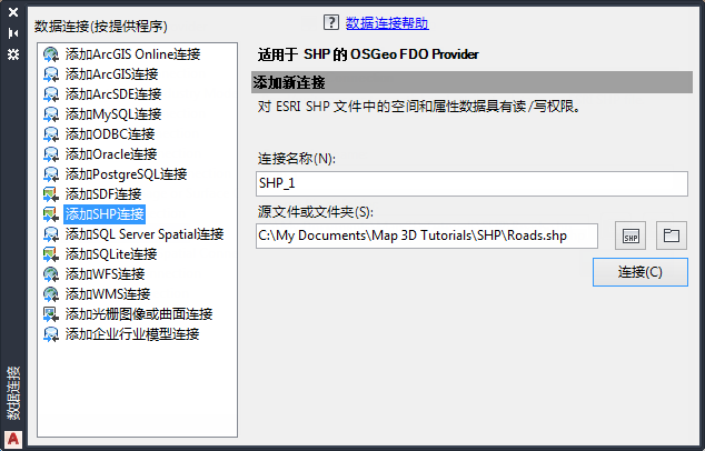 将显示数据连接窗口。