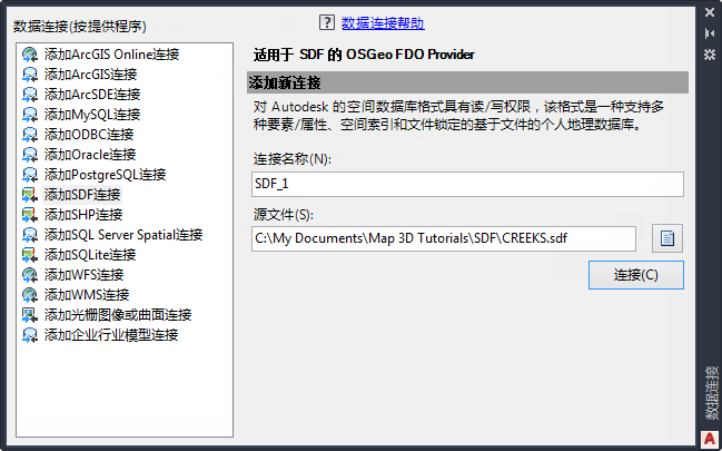 连接到 SDF 文件的步骤