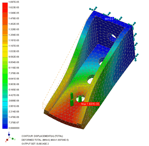 - 双击新的“子工况 2”下的“位移”以绘制变形几何体上的总变形轮廓。