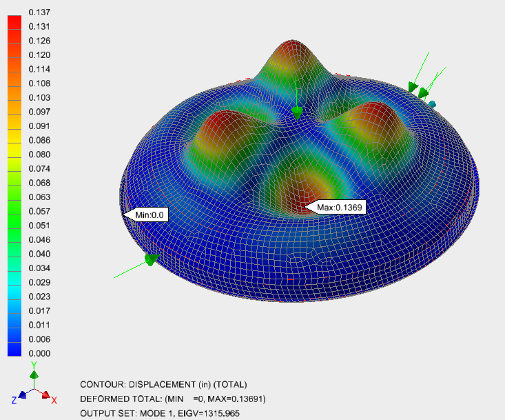 中。Autodesk Nastran(求解器)将计算位移,以图形方式表示提取的每个特征值的模态形状。