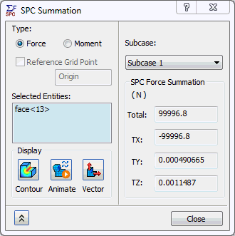 SPC 力矩总和。此外,可以使用“参考网格点”选项(请参见下一个项目符号)。