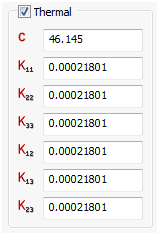 - 对于热分析,用户可在“热”区域输入传导率矩阵、比热和质量密度的值。质量密度是重复的,因为热分析和结构分析中都可能要用到它。