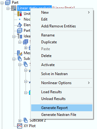 报告生成向导可创建包含分析摘要的 HTML 报告。目前只为线性静力分析提供报告生成功能。