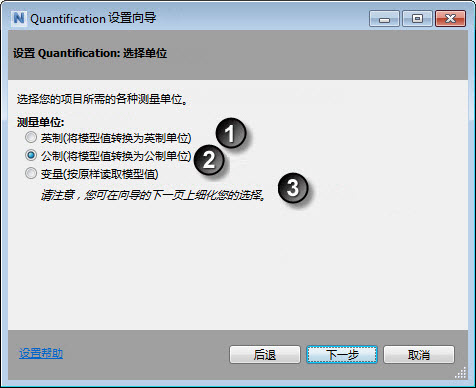 3. 变量:使用现有的模型值。您可以在下一向导页面中更改每个单独算量属性的单位。