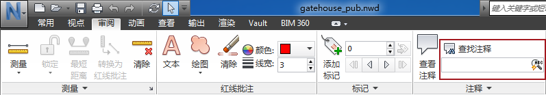 “快速查找注释”文本框中,键入要在所有注释中搜索的字符串。这可以是一个词或几个词。例如,键入 redline 并运行搜索,则仅返回包含“redline”一词的注释。