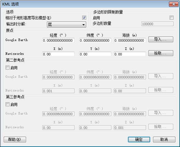 “原点导入”按钮与其他两个按钮稍有不同;如果 KML 文件包含多个位置标记,则用户可通过该按钮选择导入第二和第三参考点(如果可用)。其他两个按钮将仅导入单个参考点。