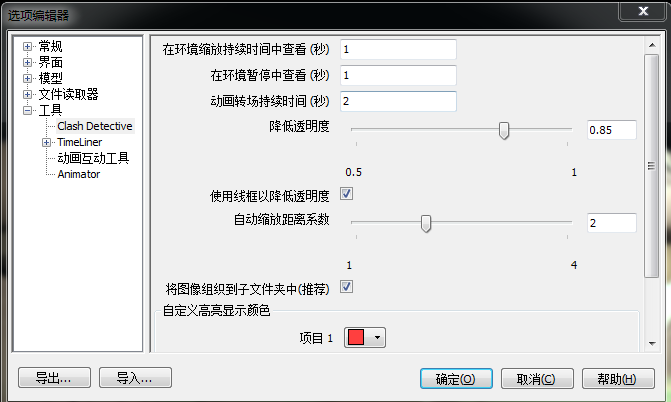 - 在“选项编辑器”中展开“工具”节点,然后单击“Clash Detective”选项。