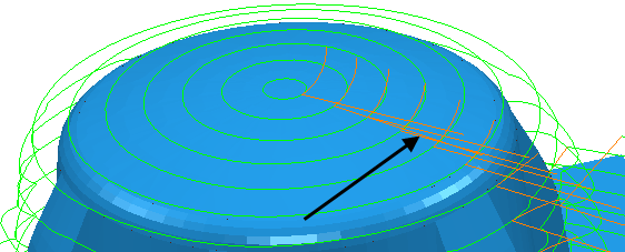 Overlap distance (tool diameter units) — Enter the distance by which a lead-out move can overlap a closed toolpath segment.