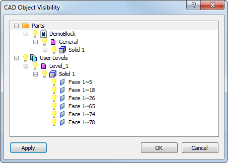 选择这些项后,Level_1 中的面 1~5 和面 1~78 将隐藏: