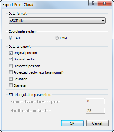 - 如果选择“ASCII 文件”作为数据格式,则选择要为每个点输出的数据。选择: