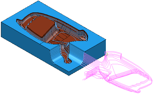 本例使用 Examples 文件夹中的 Chainsaw.ige 模型,并使用残留轮廓刀具路径作为激活的刀具路径。