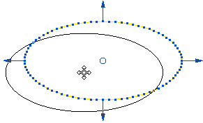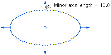 或者,也可以通过图形方式创建椭圆。例如,如果选择短轴长度手柄(光标变为 )并将其拖曳到新位置,则会更改短轴长度。