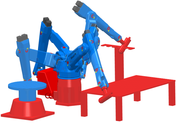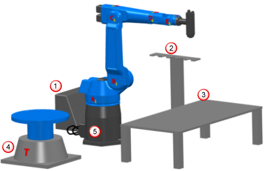 - 通过输入属性 NAME="RobotCellTable" 来编辑与工作台关联的 <machine_part> 元素,使其显示为 <machine_part NAME="RobotCellTable">。