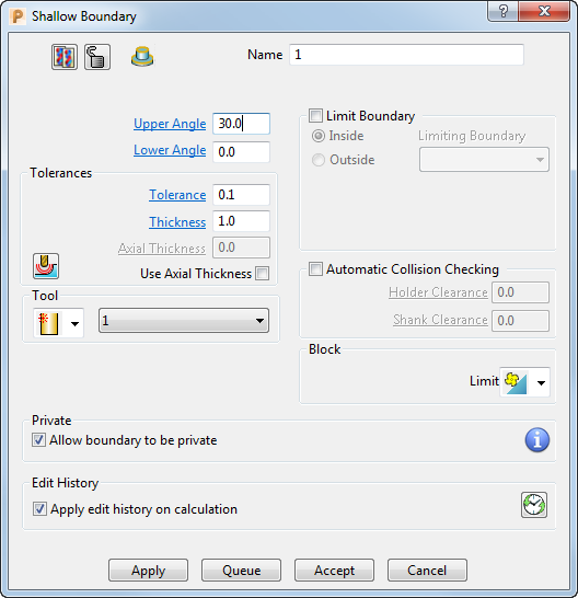 可编辑的域取决于刀具路径中是否已使用边界。如果已使用,则“名称”是唯一可编辑的域。