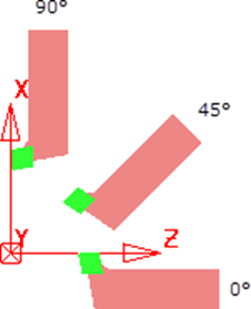 夹持角度 - 指定夹持在 X-Z 平面的角度。如果此角度设置为 0,则夹持平行于 Z 轴对齐。如果此角度设置为 90,则夹持平行于 X 轴对齐。
