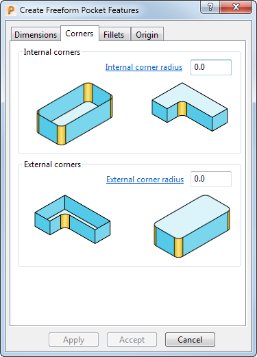 使用“创建特征”对话框的“拐角”选项卡可对特征的拐角创建圆倒角。