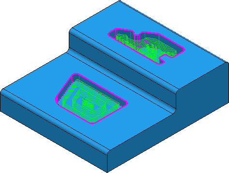 使用“特征型腔区域清除”策略可通过一种策略高效地去除单个型腔特征的大量材料。使用此策略可以在不同的 Z 轴层上加工多个型腔。