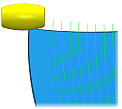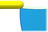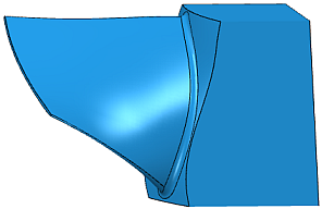 桶形刀具加工的曲面通常位于叶片上。这种刀具的几何形体可使您在使用相对较大的行距过程中达到较小的残留高度。要使用备用刀具达到相同的残留高度,需要显著减小行距。