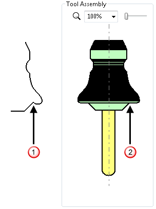 本例说明如何为特定刀具创建刀柄。刀柄轮廓在 PowerMill 外部生成,并输入为参考线。可以采用相同的方式创建自定义刀具轮廓、靠模铣刀轮廓和刀具夹持。