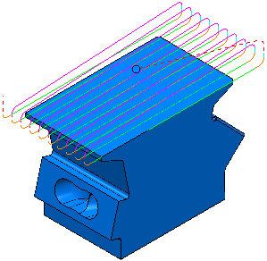 使用“特征面铣削”策略,在有界面或无界面特征指定的工件曲面上引导大型刀具生成平坦曲面。使用此策略可在不同的 Z 高度处加工多个面特征。