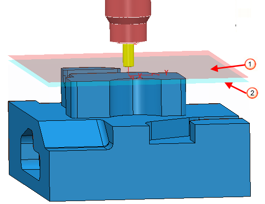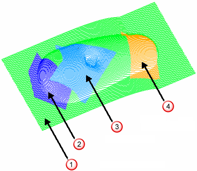 单击“刀具路径”选项卡 >“显示”面板 >“按 Z 高度查看”以在特定 Z 高度处查看激活刀具路径。