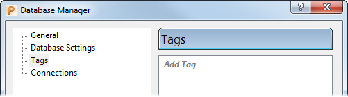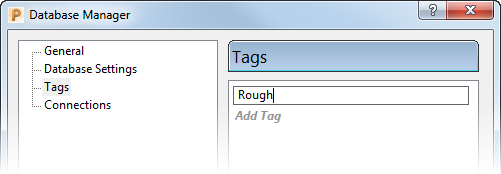 注: 要删除标记,请从“数据库管理器”对话框的“标记”页面上的列表中选择标记,然后单击