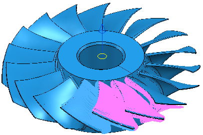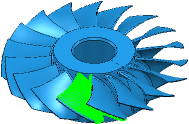 本例使用 Examples 文件夹中的 Blisk_Simple.dgk 模型,并使用叶片精加工刀具路径作为激活的刀具路径。它将 XY 面 作为主工作平面。
