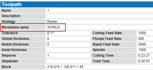<th> Workplane Name</th><td>${toolpath.Workplane}</td>