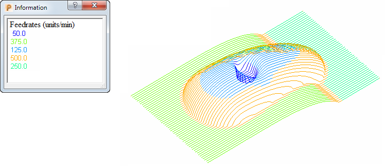 (刀具路径旁边)会显示“信息”对话框,该对话框会以不同的颜色显示关键值: