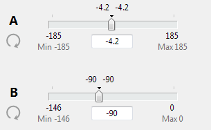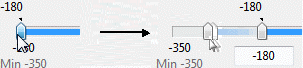 “最小”和“最大”轴值分别显示在滑块两端。“最小”和“最大”值上方显示的值指示可以一次性移动滑块的最大范围。