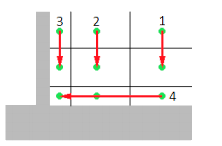 - 宽度在先 - 将材料去除到在“壁切削距离”页面上指定的宽度,然后再进行下切。