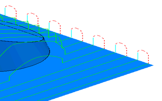 自动延长 - 选择此项可沿指定方向延长退刀和进刀移动以到达安全区域。这会将到安全区域的整个退刀路径和来自安全区域的整个进刀路径定义为单向。