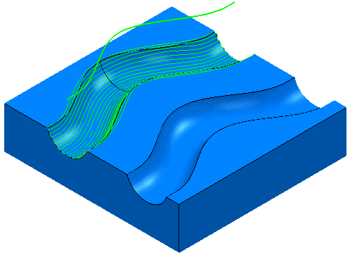 “曲线投影精加工”策略可将管状参考线投影到模型上,然后加工模型。该管的中心就是参考线的焦点。该策略类似于直线投影精加工策略,只不过参考线是曲线,而非直线。