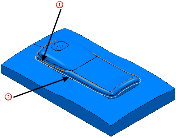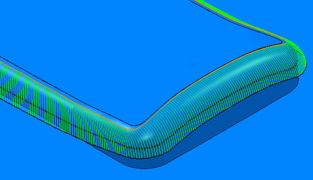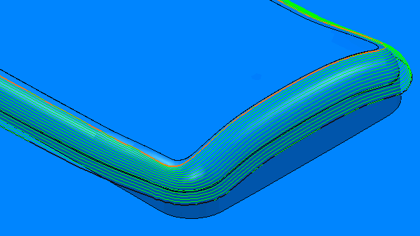 使用“参数偏移精加工”页面可在两条曲线之间进行加工。该策略会提取两条曲线之间的母线,以生成参数偏移刀具路径。