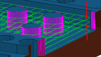 轴向余量 - 输入刀具的偏移(仅在刀轴方向)。进行 2.5 轴或 3 轴加工时,输入正值可在水平面留下材料。