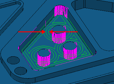 径向余量 - 输入刀具的径向偏移。进行 2.5 轴或 3 轴加工时,输入正值可在垂直壁留下材料。