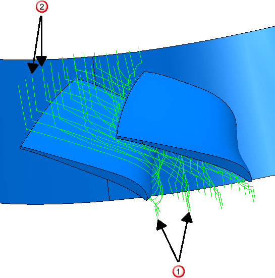 分流叶片 - 从列表中选择用于定义分流叶片和任何圆倒角几何形体的层或组合。