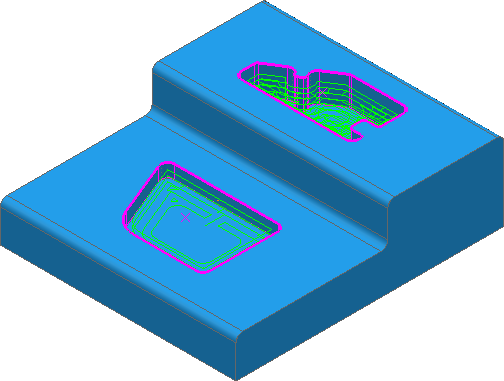 在使用型腔区域清除策略之后,可使用“特征型腔残留区域清除”策略利用小型刀具对大型刀具无法到达的型腔特征区域进行粗加工。使用此策略可以在不同的 Z 轴层上加工多个型腔。