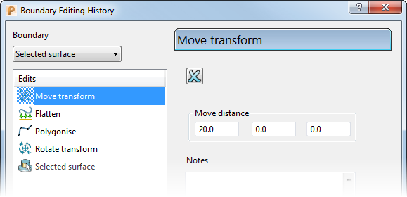 使用“边界编辑历史”对话框可显示边界的所有编辑历史。该对话框还可让您修改其中一些编辑。