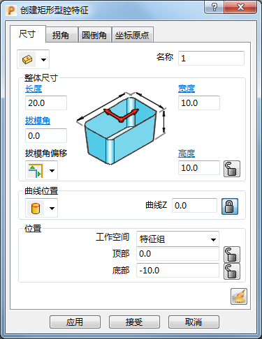 系统将显示“创建特征”对话框,具体取决于特征类型。